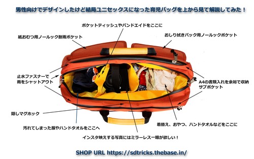 「マザーズバッグはラブリー過ぎて持てない」「気に入ったバッグも毎日使っているとすぐに壊れてしまう」「トートバッグやメッセンジャーバッグやワンショルダーバッグを育児に使っているが、いまいち使いづらい」という不満を全て解消致します。
